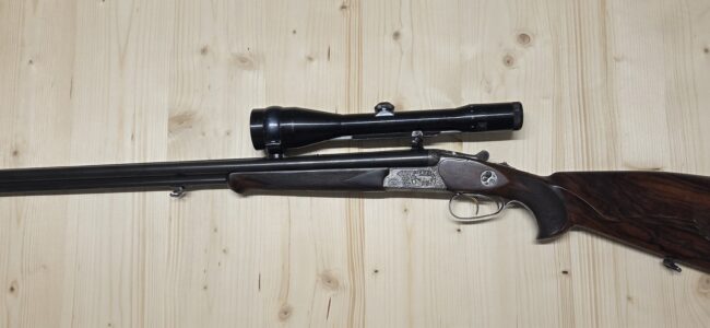 Simson Luxus, 20/76, 30.06, EL Zimmermann .22 Hornet, mündungslang, Zeiss 2,5 – 10 x 52, Absehen 4, Schaft mit Kaisergriff und bayerischer Backe mit Doppelfalz, Vorderschaft mit Tropfnase, Zustand sehr gut