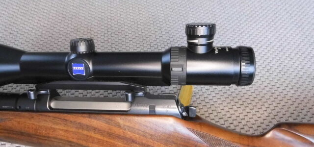 Zielfernglas Zeiss Varipoit VM 3-12 x 56 LP mit Schiene. Montiert mit Mauser Duble Squer Montage.