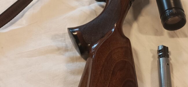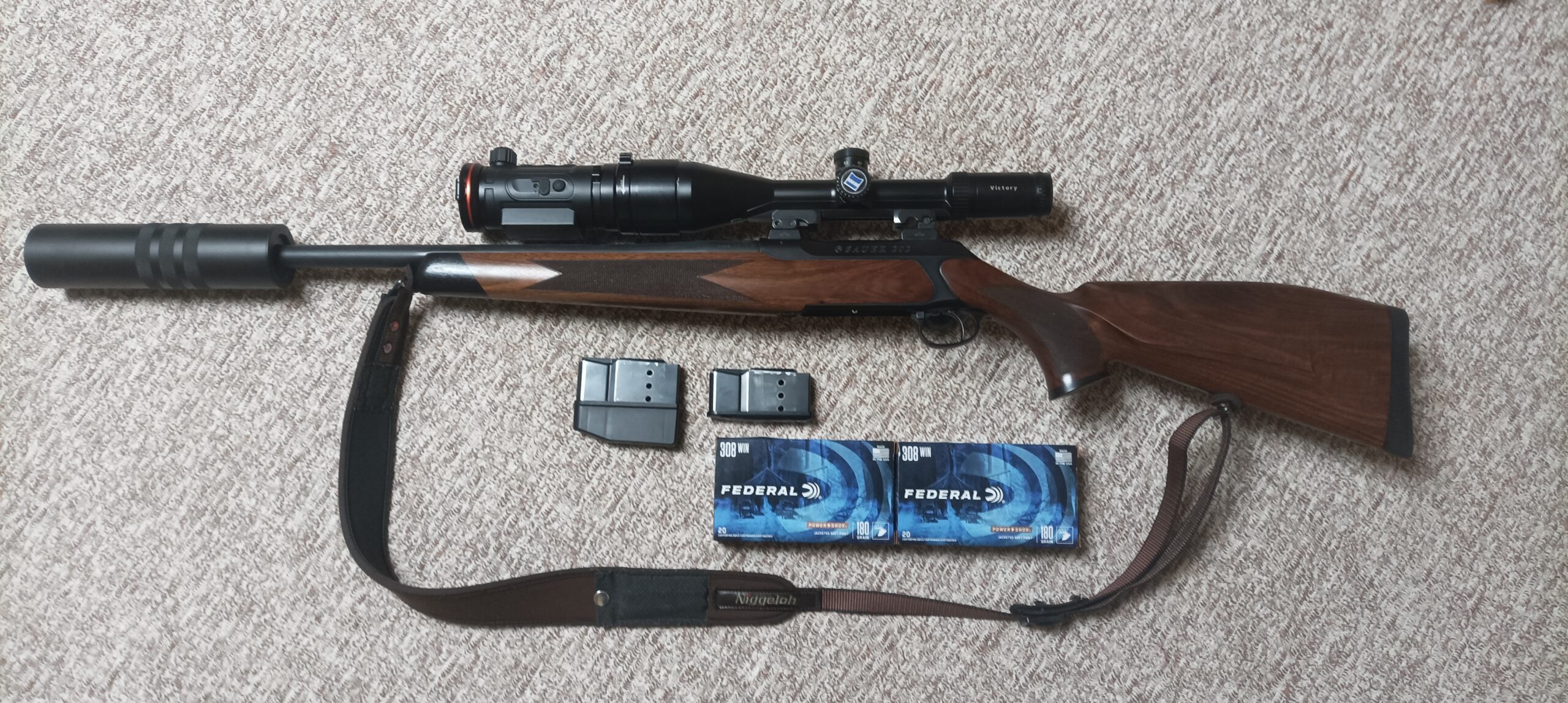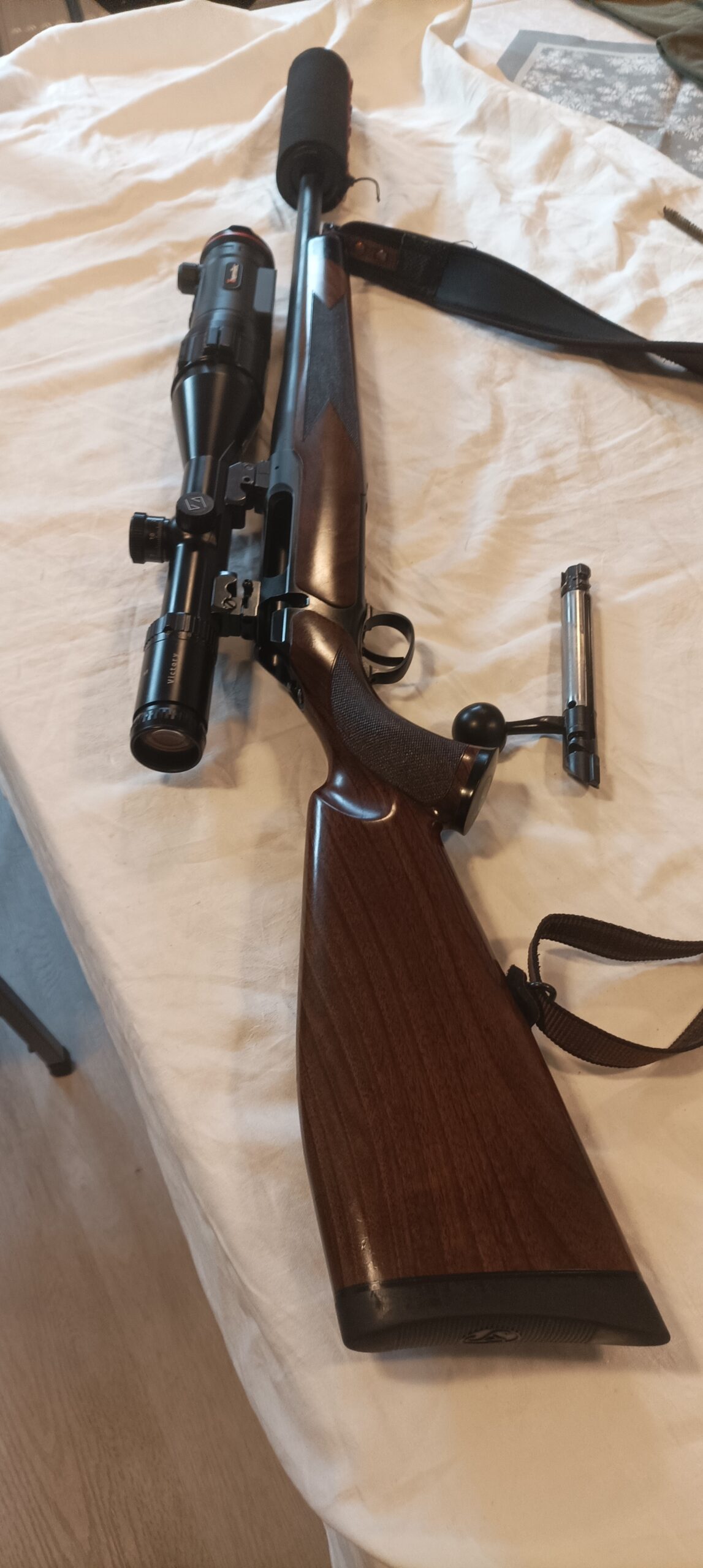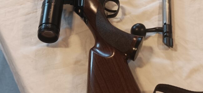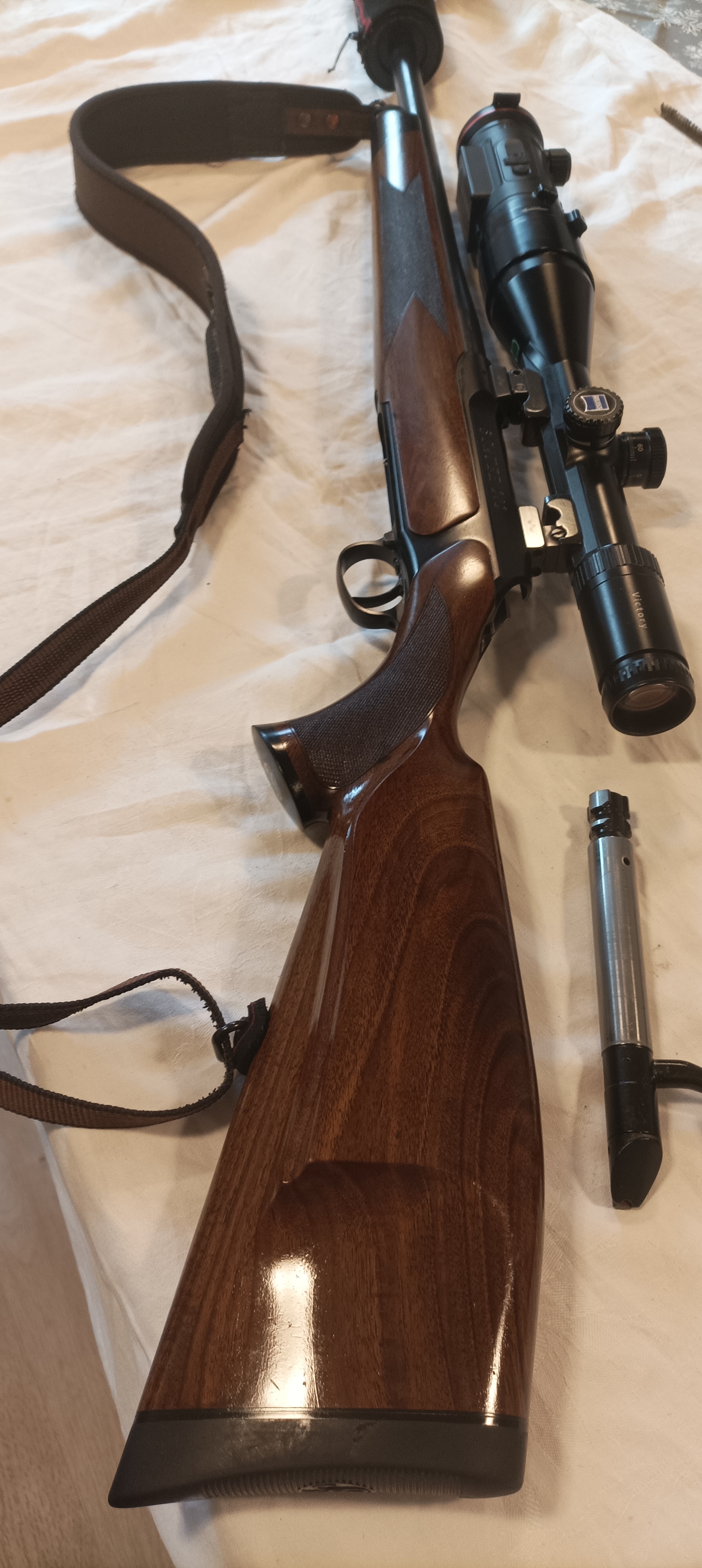 Waffe ist ausgestattet mit einem Zeiss Variopoint 3-12*56 HT ASV mit LP Abs.60 / Schwenkmontage
