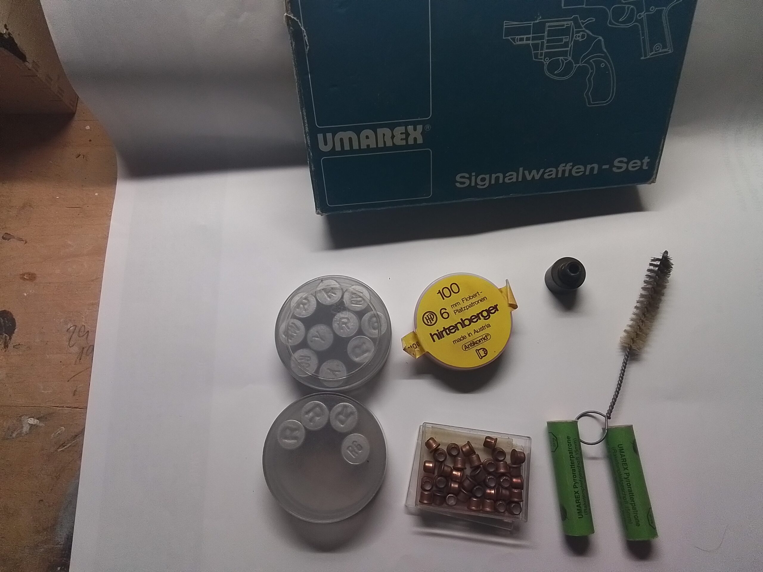 Sowie diverse angefangene Munition: Platz -, Gaspatronen, Signalstärke